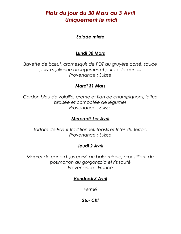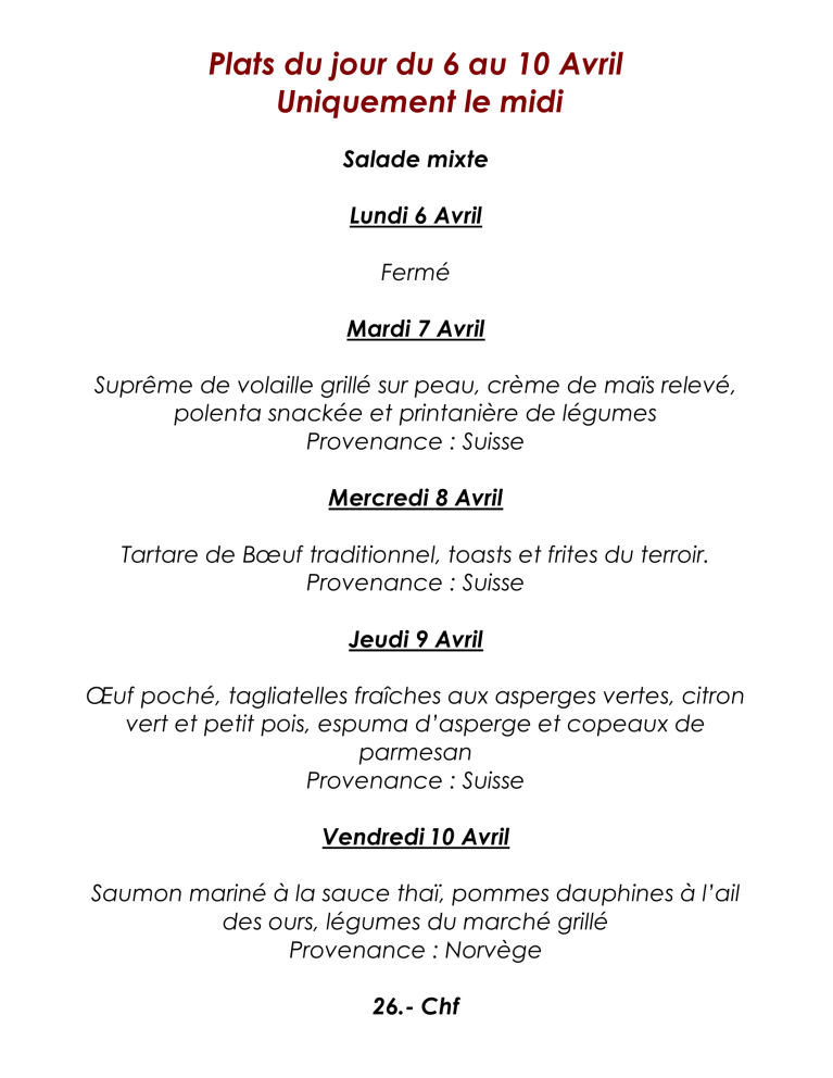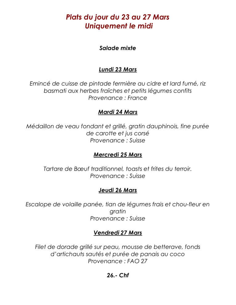 menu du jour
